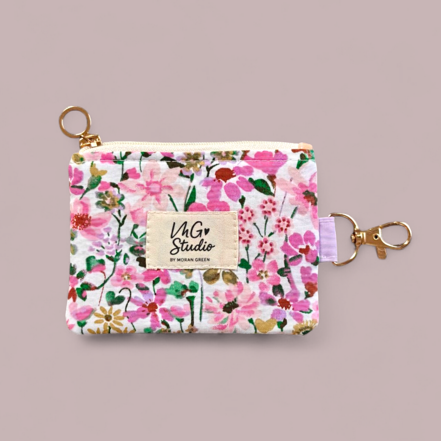 Keyring Zipper Pouch - Pinky Floral