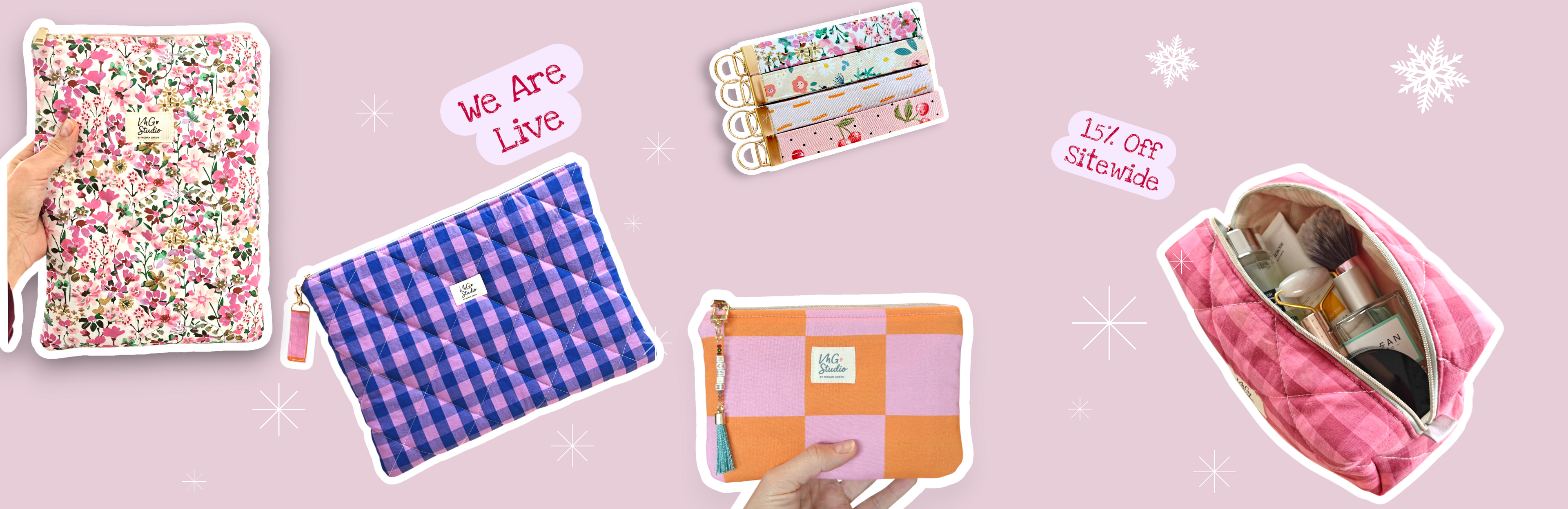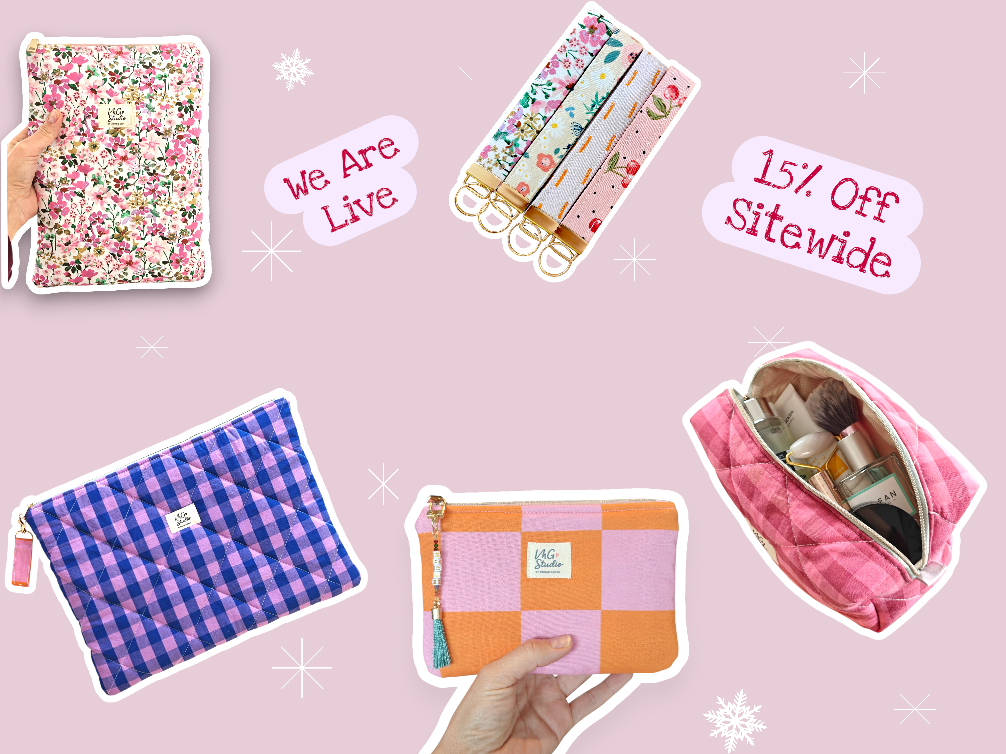 Quilted Makeup Bag - Pink & Red Checkered