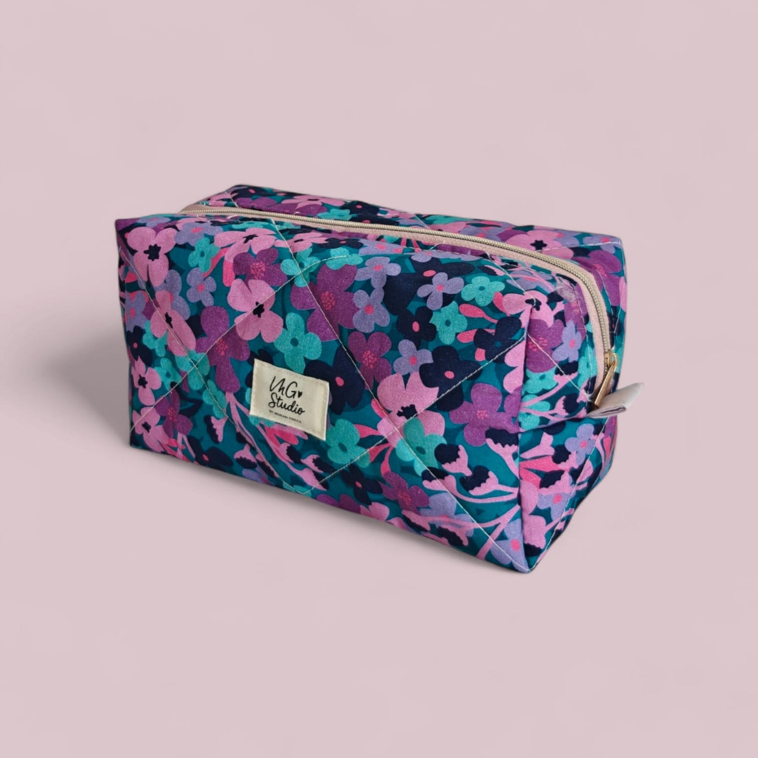 Quilted Makeup Bag - Purple Floral
